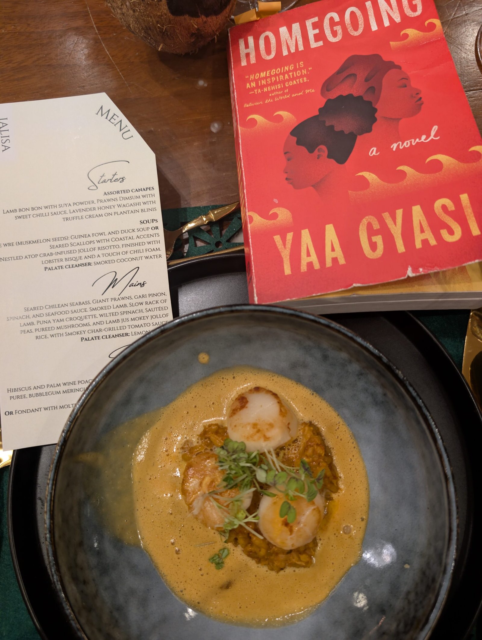 Our opening dinner and book discussion was hosted at Chef Ruby of Food People Ghana‘s home, where she masterfully marries the rich, diverse flavors of Ghana with contemporary, global influences. The entire experience was inspired by Homegoing.