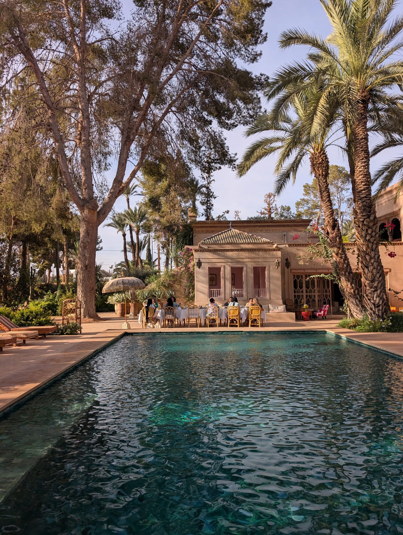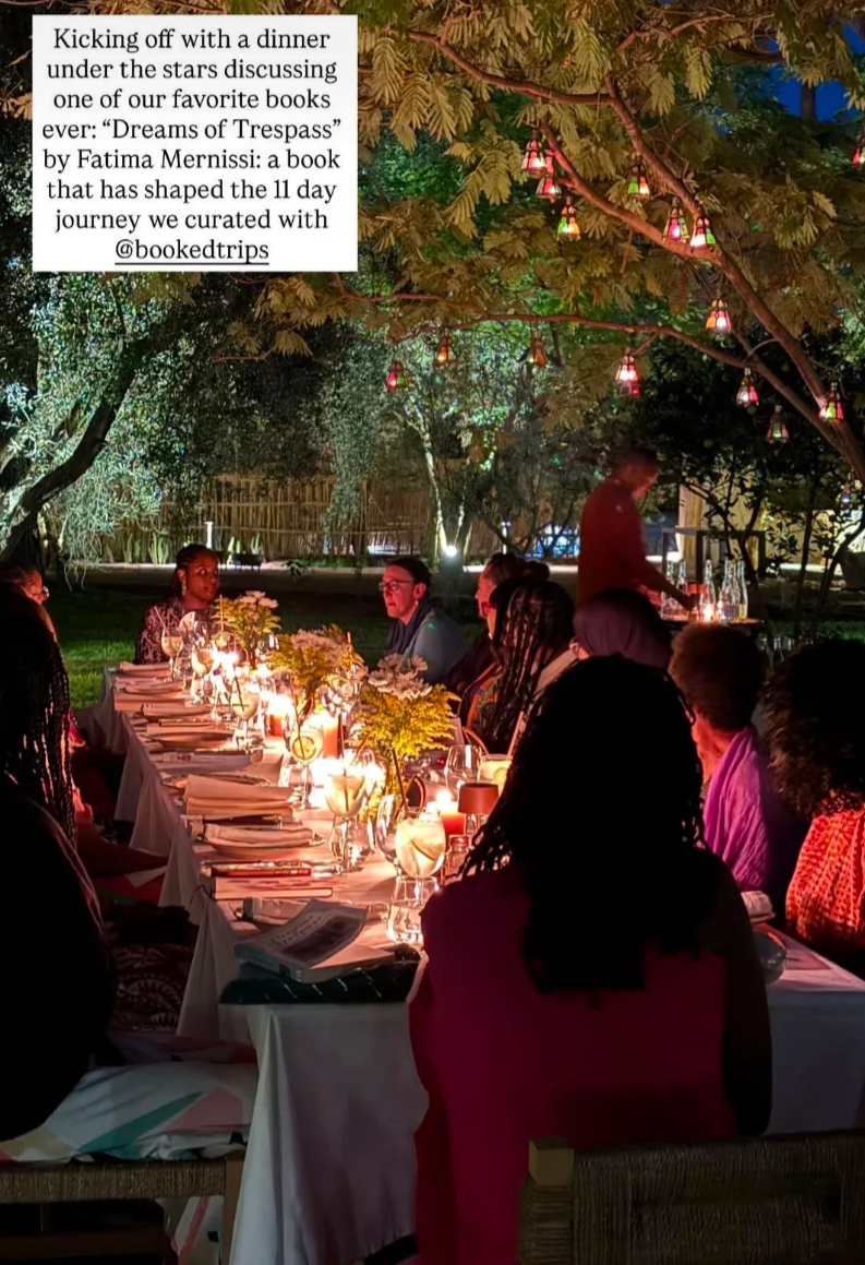 We started our trip with an intimate gathering in the gardens of our trip hotel Jnane Rumi in the Palmerie of Marrakech, Morocco. The dinner was a chance to get to know each other and discuss our featured book, “Dreams of Trespass: Tales of a Harem Girlhood” by Fatima Mernissi. The hotel is a design lovers dream!