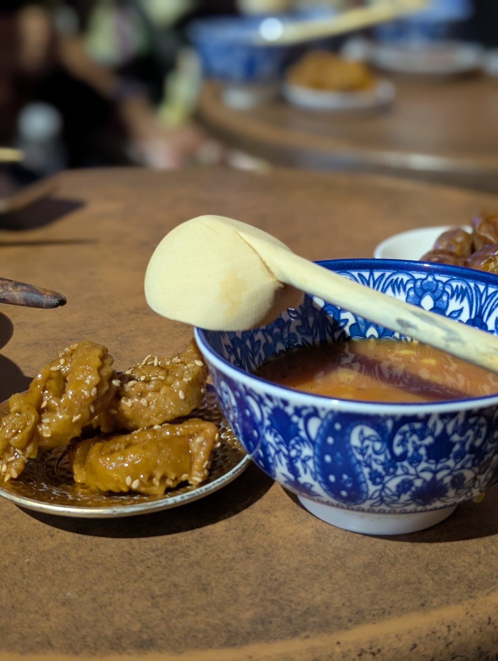 Later that evening we ate our way through the kasbah, mellah, and medina eating sfenj, harira soup with chebakia and dates, olives, loubia, lamb, beef kabobs and more!