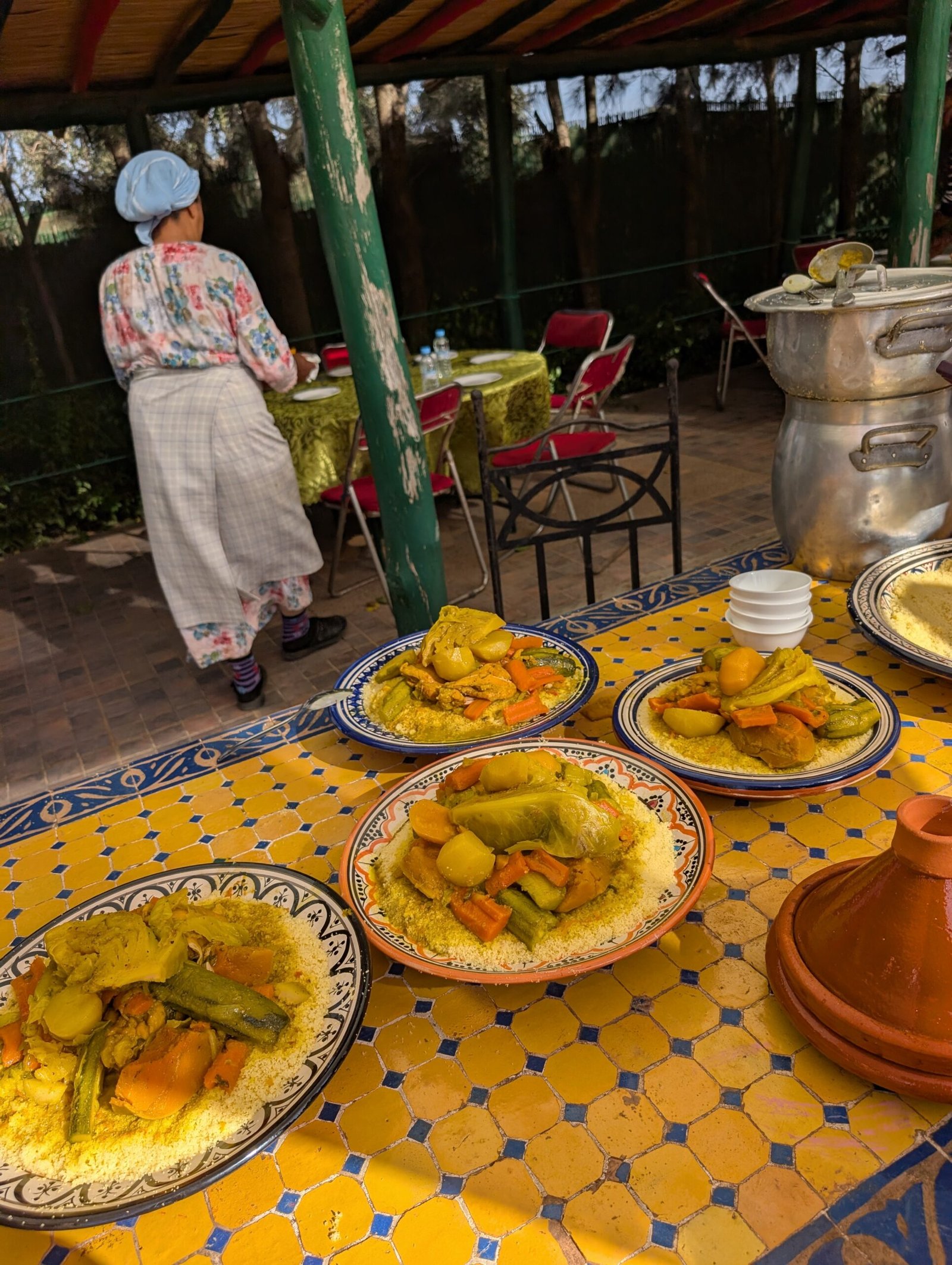 We made the long drive from Marrakesh to Fez and enjoyed a farm to table cooking class in the outskirts of Fez on a Black woman-owned eco-farm named after Maya Angelou. We learned how to make our own couscous and tagine with vegetables collected from the onsite gardens and tea with honey from the onsite beekeeper. It was such a relaxing and lovely afternoon we didn’t want to leave the farm!