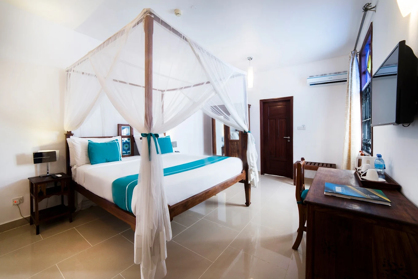 In Stone Town in Zanzibar Set in the heart of UNESCO world heritage site of Stone Town, our hotel was once a town house famous for its marble floors and tiles and has now been lovingly restored to a hotel that blends classic Zanzibar culture with modern elements providing the ultimate haven amongst Stone Town’s labyrinth of winding alleys, bustling markets, mosques, and famed Zanzibari doors. The property has an onsite pool, rooftop restaurant, and onsite pool. Maru Maru Hotel or similar.